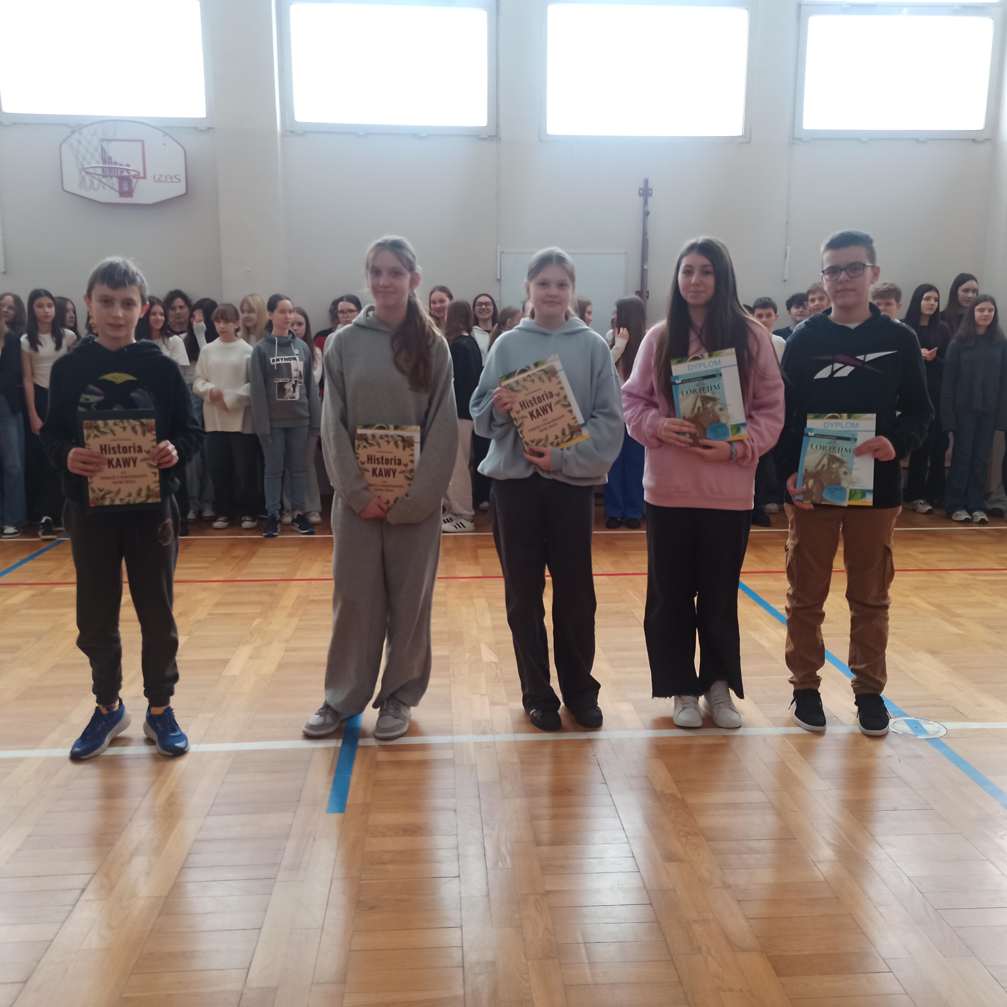 Jan Jagiełło (7c) zajął 1 miejsce otrzymując specjalny dyplom laureata oraz nagrodę książkową, Kinga Świerczyńska (6b), Julia Sikora (7b) i Kornelia Sokalska (8c) zajęły 3 miejsce otrzymując dyplom laureata oraz nagrodę książkową, Mikołaj Śmiałowski (7c) i Dominik Szafnicki (8c) zajęli 5 miejsce otrzymując dyplom laureata oraz nagrodę książkową, 15 osób otrzymało dyplom wyróżnienia zajmując miejsca od 6 do 10.