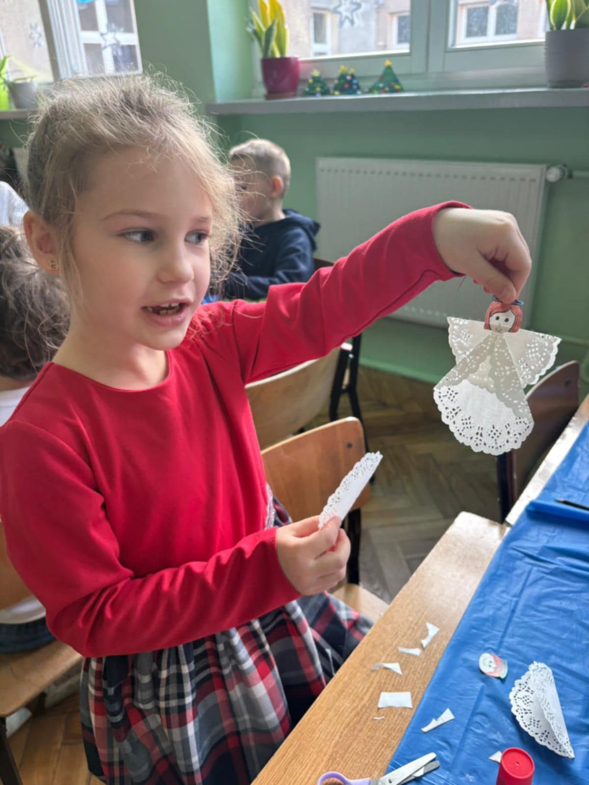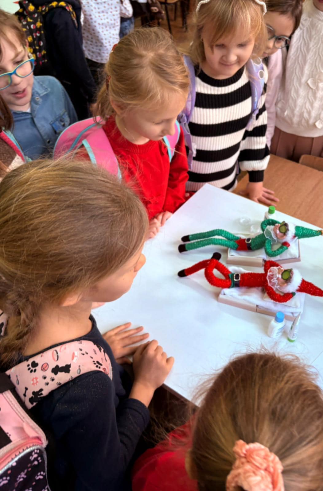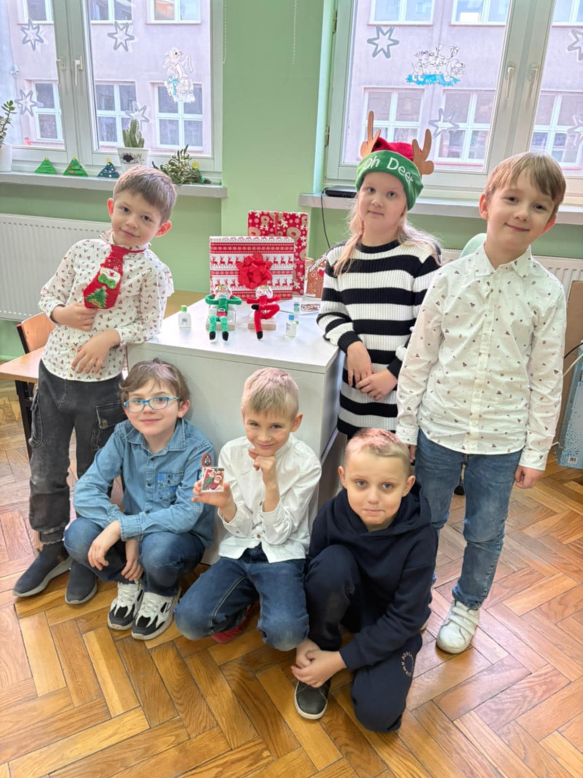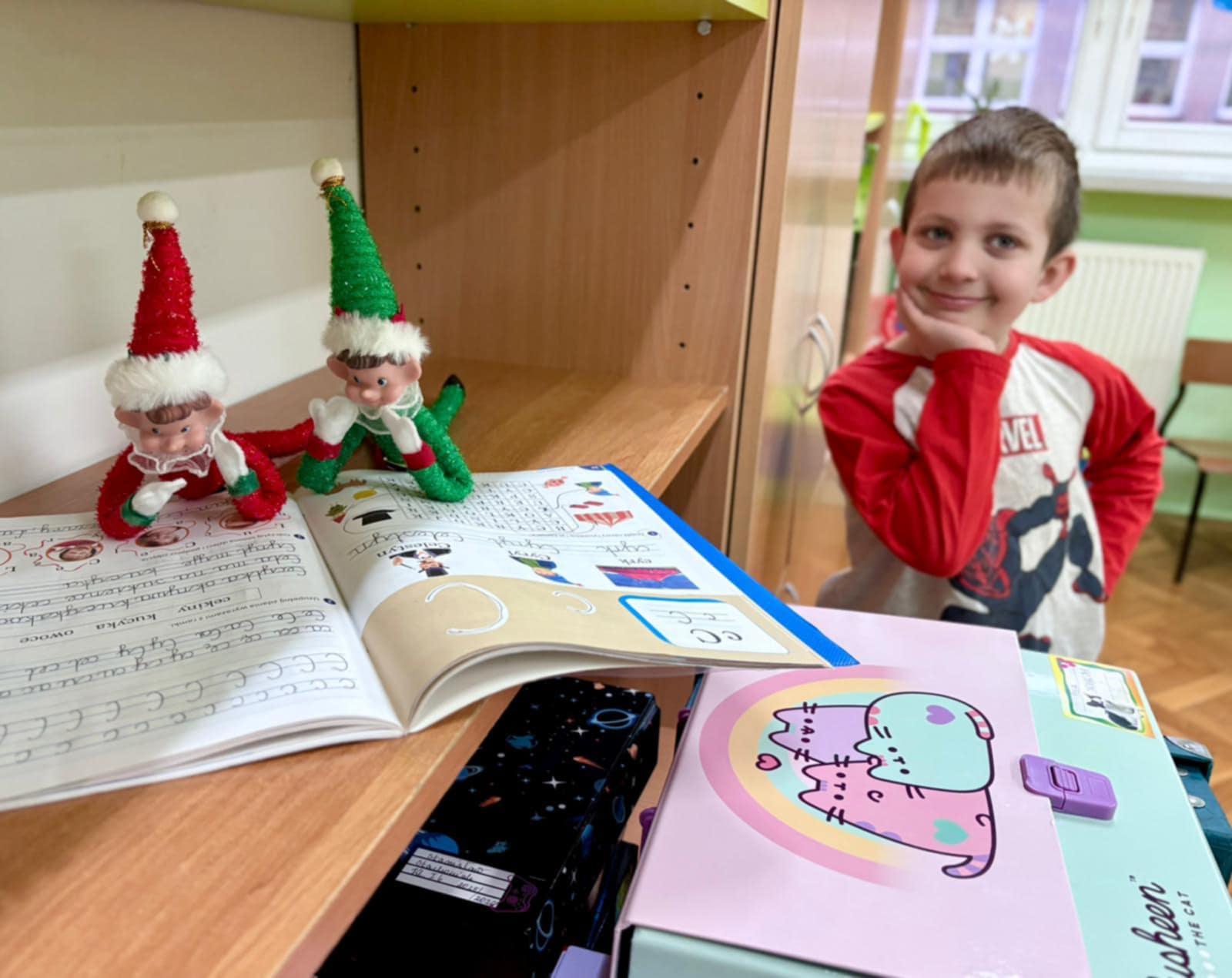 Grudzień w klasie 1B upłynął w wyjątkowo magicznej atmosferze, a wszystko za sprawą wizyty Psotnych Elfów, które spędziły w szkole aż 2 tygodnie. Codziennie czekały na uczniów nowe niespodzianki, wywołujące wiele radości i uśmiechów. Jeden z elfów słynął ze swoich zabawnych psot, które z humorem rozpoczynały każdy dzień w szkole. Drugi elf zostawiał dzieciom kreatywne zadania do wykonania, zachęcające do współpracy, rozwijania wyobraźni oraz twórczego myślenia. Wizyta elfów sprawiła, że grudniowy czas nauki stał się jeszcze bardziej radosny i pełen świątecznej magii.