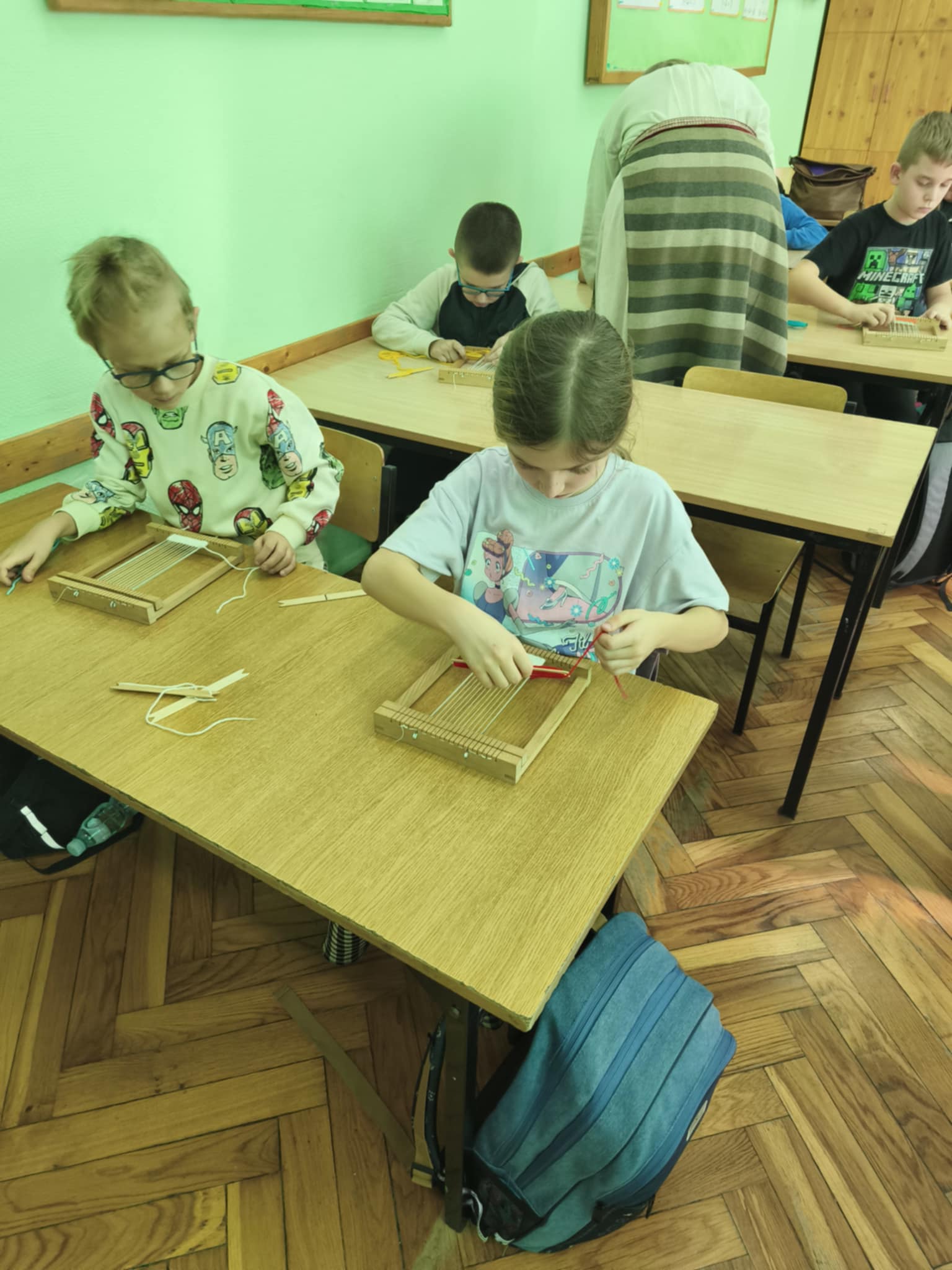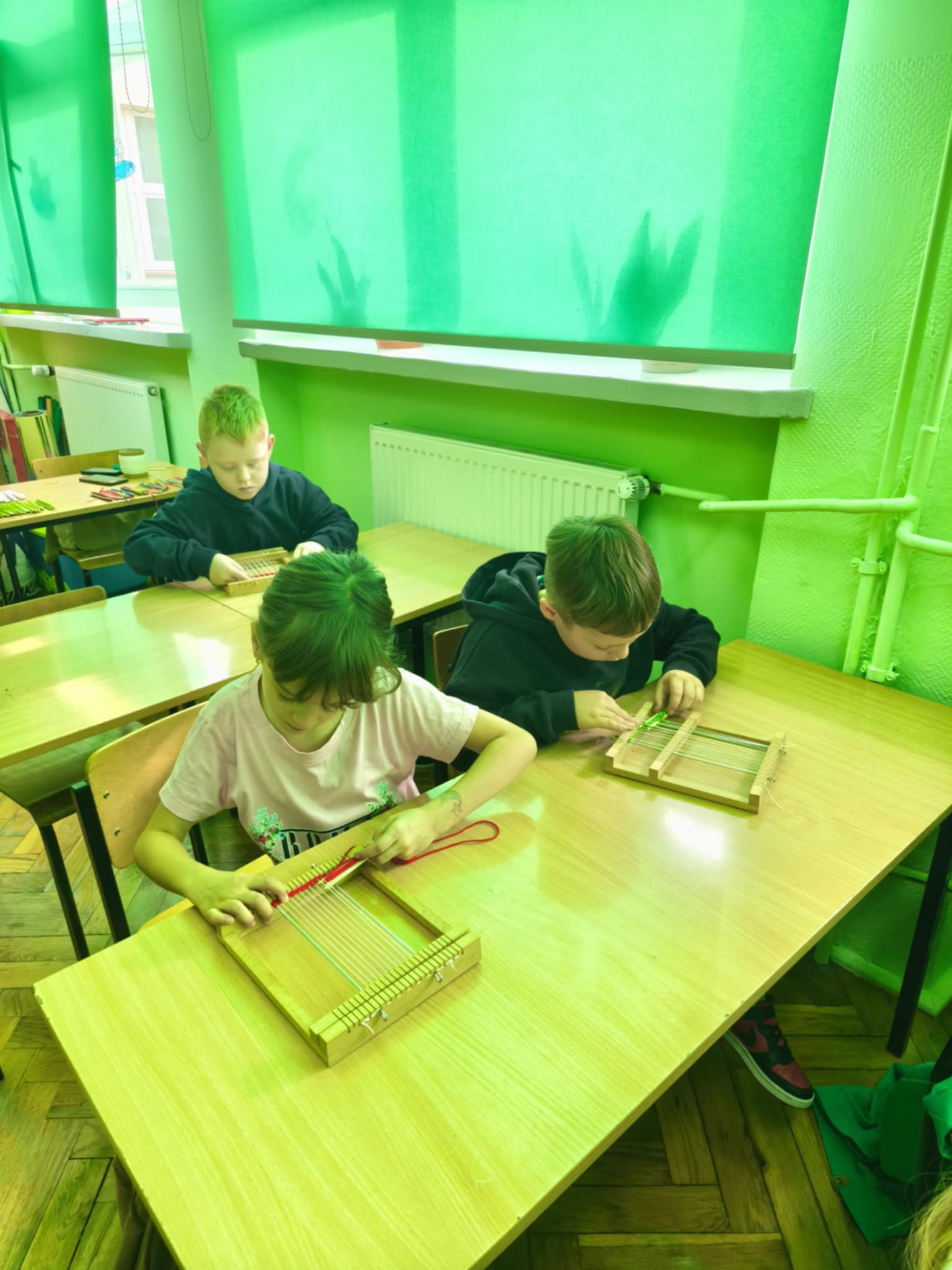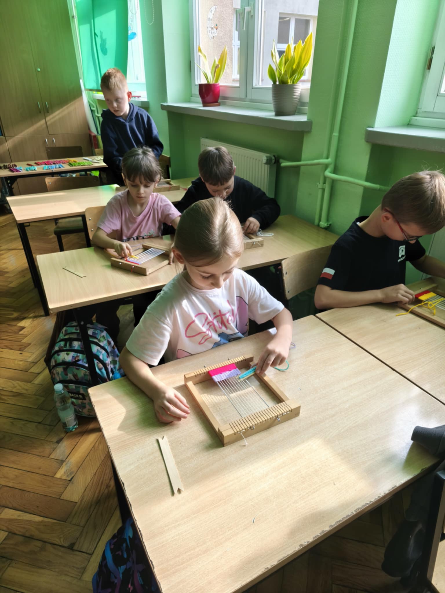 Następnie każdy z nas samodzielnie tkał na mini krosnach.
