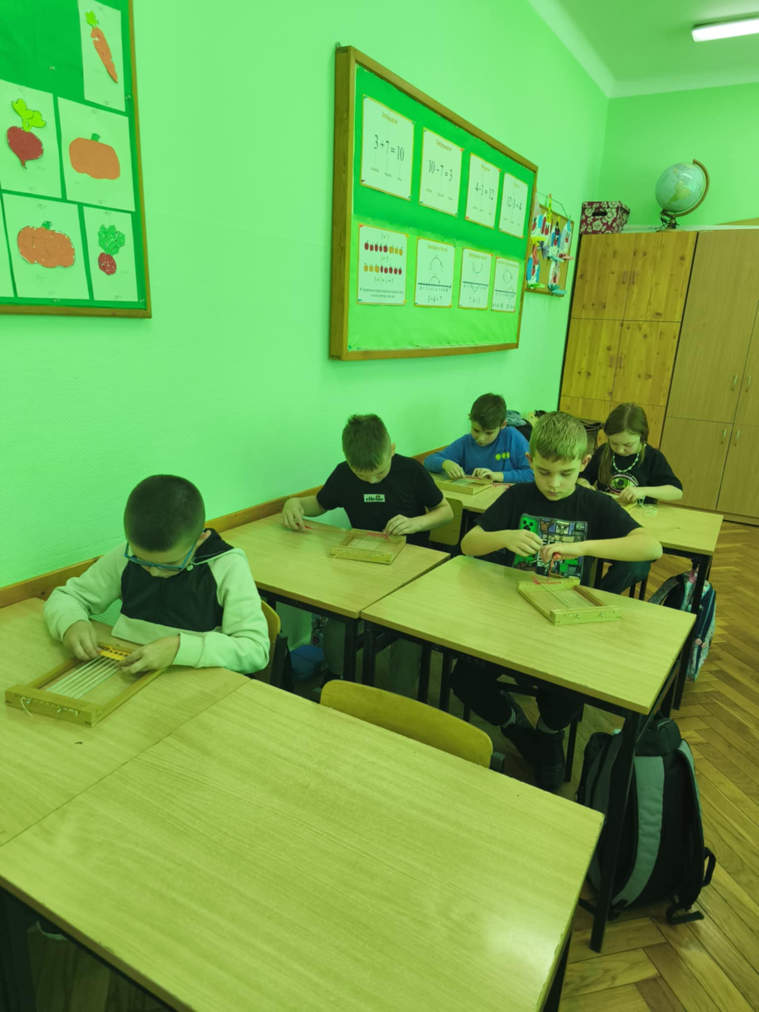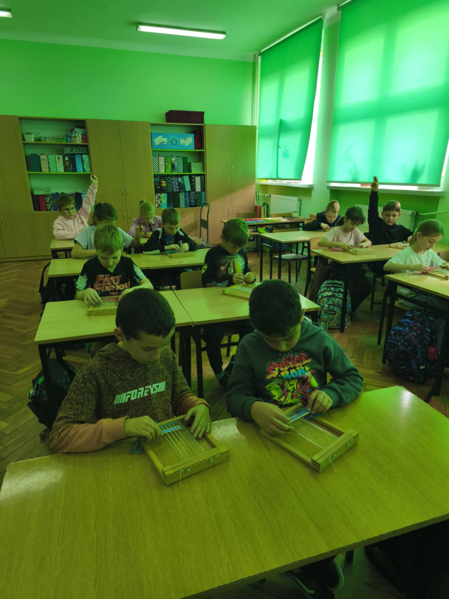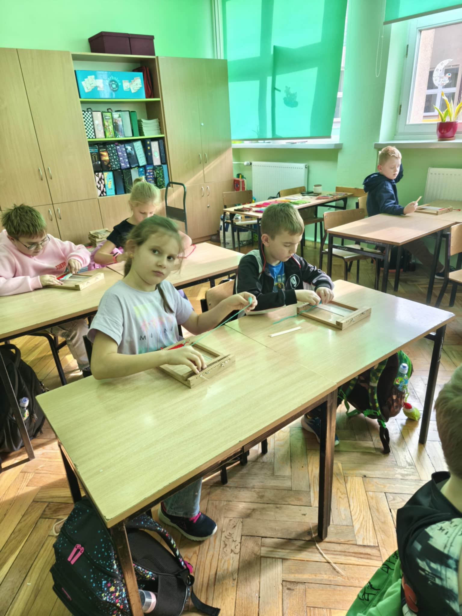Następnie każdy z nas samodzielnie tkał na mini krosnach.