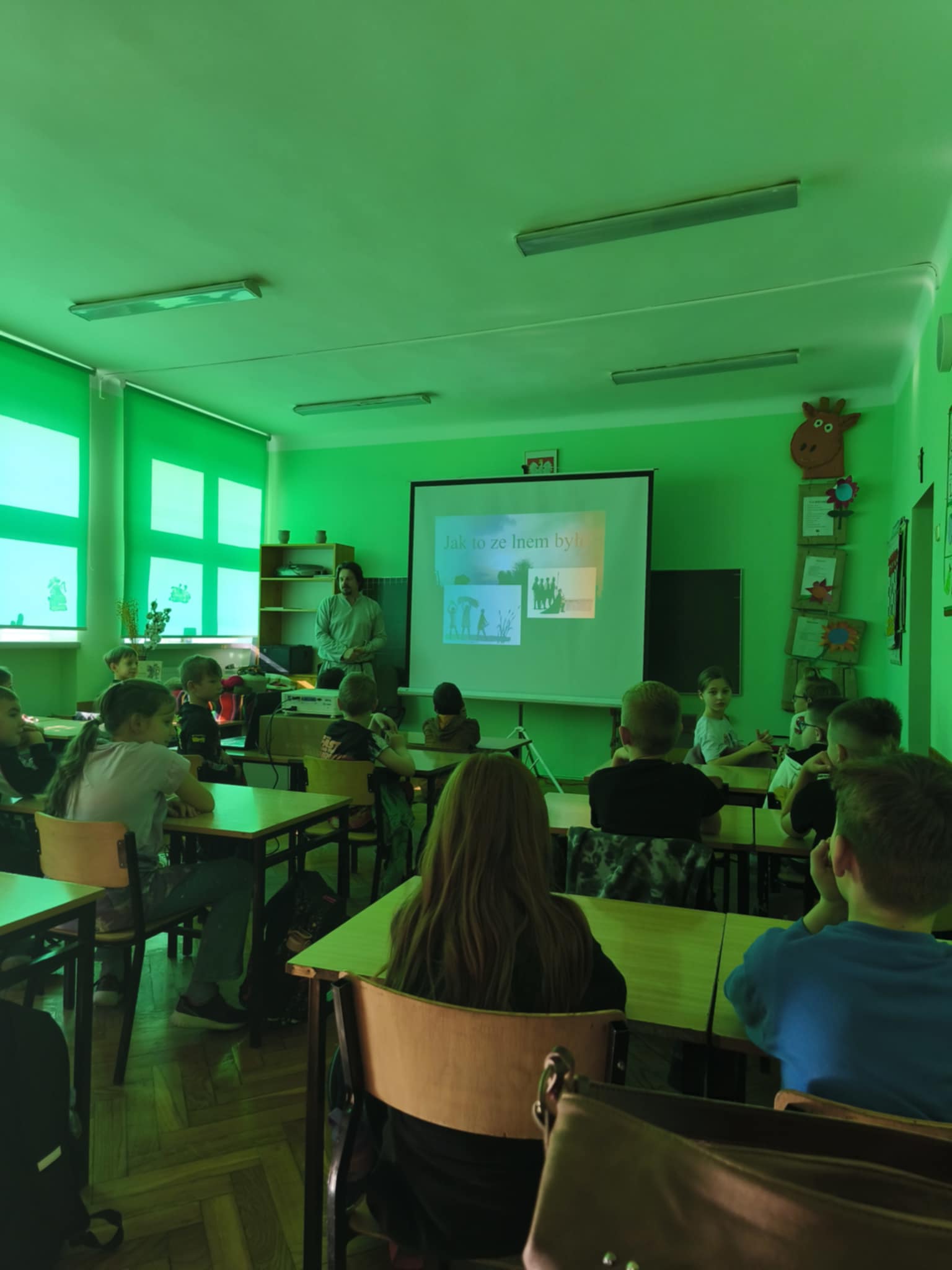 Dzisiaj klasa 2c uczestniczyła w pierwszym spotkaniu historycznych warsztatów edukacyjnych pt. "Jak to ze lnem było".