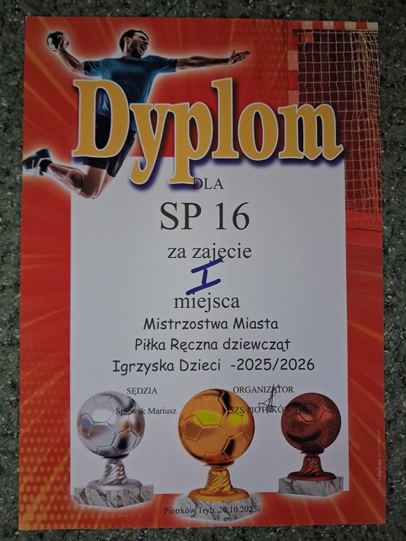 W minionym tygodniu (poniedziałek 20.10.2025 r. oraz piątek 24.10.2025 r.) odbyły się Mistrzostwa Miasta w piłce ręcznej dziewcząt i chłopców w ramach Igrzysk Dzieci.