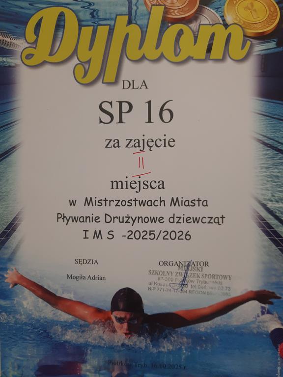 W dniu 16.10.2025 r. odbyły się zawody w pływaniu drużynowym dziewcząt i chłopców.
